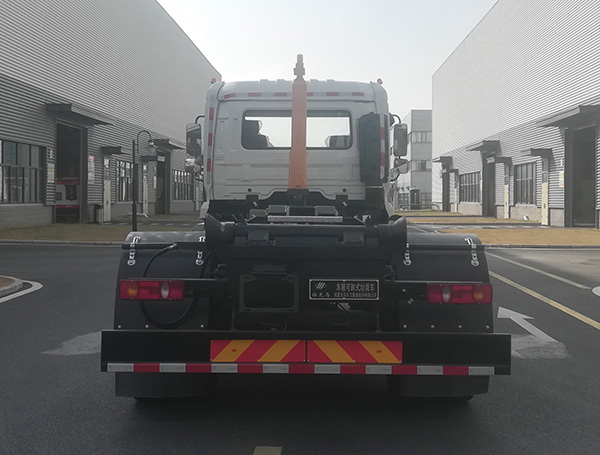 该车安装具有卫星定位功能的行驶记录仪,仅选装4500mm轴距;侧防护的材料材质:Q235B,后部防护装置的材料材质:Q345B,连接方式为螺栓连接;后部防护装置的断面尺寸(宽赘?mm:60?40,离地高度为440mm;该车可配置拉臂钩A或拉臂钩B;可选装铝合金材质侧防护、清洗系统、污水箱、液压油箱、液压油箱防水罩、三联件和另一种液压油箱及备胎位置;随底盘驾驶室选装扰流罩、前雾灯、卧铺侧窗,驾驶室顶部中间三个装饰灯;可选装另一种后悬,此时整车长/后悬/离去角:7200mm/1270mm/22?ABS型号/生产厂家:3631010-C2000/东科克诺尔商用车制动系统(十堰)有限公司,ABS 8/东科克诺尔商用车制动系统(十堰)有限公司,4460046450/威伯科汽车控制系统(中国)有限公司,J ABS/焦作博瑞克控制技术有限公司。随底盘选装发动机/油耗值(L/100km):DDi50E190-60/23.9、D4.5NS6B190/24.4、D6.7NS6B230/23.7、B6.2NS6B210/23.8、B6.2NS6B230/23.8、DDi50E220-60/25.1、D4.0NS6B185/25.2;该车主要由液压控制系统控制专用吊臂的起吊、拉装工作,从而实现放置在地面的装载有生活垃圾的垃圾箱体的转运功能;该车型可选装ETC车载装置。 |