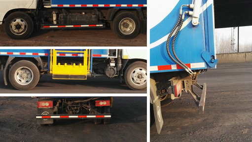 1,可选装新保险杠.装备有挂桶提升机构及后倾卸式车厢,实现自装卸功能.配备车载高压冲洗设备,消毒设备;2,左侧侧面防护装置材料为冷板B-2.0,右侧侧面防护装置由专用装置代替,距地320mm,后下部防护装置材料为矩型管20-D-100?0?.均为螺栓连接.后部防护装置截面尺寸100mm?0mm,离地高度345mm;只选用底盘2800轴距,选用前/后轮距:1530/1425,1415/1425;3.4A2-82C50/4B2-95C50/4A2-88C50/4J28TC5对应的油耗值为12.2/12.4/12.3/12.4;4.ABS型号:YF8;生产厂家:武汉元丰汽车电控系统有限公司,选装后视镜型式 |