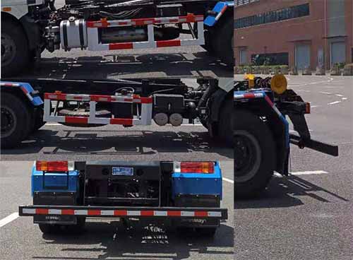 1.侧面及后下部防护装置,所用材料材质:Q235-A,连接方式:螺栓连接,后部防护装置的主要尺寸参数,断面尺寸:120?0?mm,离地高度:480mm.驾驶室两端喷涂总质量18000kg字样;2. 随底盘选装前围和灯具,选装宽体保险杠,脚踏板;3.装CCA8拉臂钩时,整备质量为7600,额定载质量为10205;装LBH14拉臂钩时,整备质量为7900,额定载质量为9905;4.随底盘装有ABS,ABS系统生产厂家:长春瑞立科密汽车电子有限公司,型号:CM4XL.装备限速装置,限速89km/h.安装具有卫星定位功能的行驶记录仪;5.发动机净功率值:CA4DK1-18E6为136kW,CA4DK1-22E6为162kW,,对应的油耗值(L/100km)为25.6,25.6. |