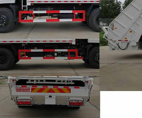 | 随底盘选装驾驶室;选装后部上料结构;侧防护材料Q235,螺栓连接;后防护由车辆专用作业装置代替,车辆后端离地高度400mm;仅采用4500mm和3950mm轴距底盘;外形尺寸长/轴距/前悬/后悬/后伸的对应关系为:8710/4500/1440/2470/300,8160/3950/1440/2470/300,7950/3950/1250/2450/300;发动机对应的油耗(L/100Km)值分别为:ISD180 50/26.8,YC6JA180-50/27.1,EQH180-52/26.2,ISB210 50/26.5,ISD190 50/26.0,YC4E160-56/25.8,YC4S150-50/25.7,ISB170 50/26.5,ISB190 50/26.5;安装具有卫星定位功能的行驶记录仪;ABS的型号:ABS-E 4S/4M,生产厂家:威伯科汽车控制系统(中国)有限公司;该车专用装置为箱体及压缩机构,用于城市环卫垃圾压缩及运输. |