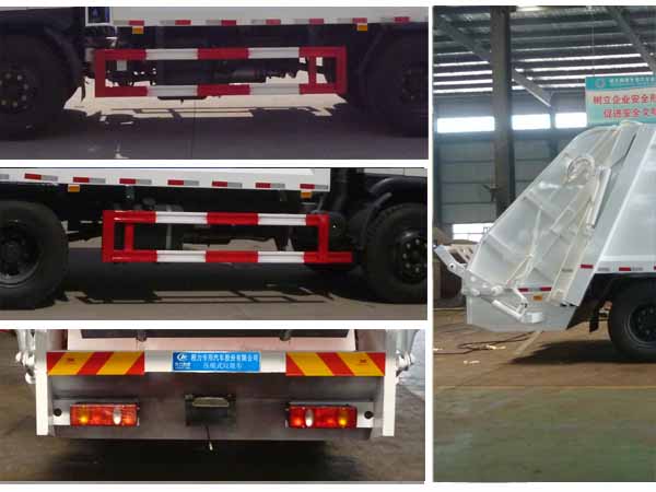 1.防护材料:Q235B碳钢,连接方式:左右侧面防护均采用焊接连接在箱体底面上,后部防护由专用装置代替豁免,最小离地高度410mm。2、ABS系统生产厂家:东风电子科技股份有限公司制动系统公司,型号:3631010-C2000,安装具有卫星定位功能的行驶记录仪. 3.车辆颜色、文字喷涂位置可变化。4.该车前悬(mm)/接近角(?的对应关系为:1450/22,1250/24,1220/26;该车后悬(mm)/离去角(?的对应关系为:2500/12,2300/13;该车额定载质量(kg)/驾驶室准乘人数(人)的对应关系为:7105/3,7170/2。5.该车有五种可选翻转样式,A:三角斗装置,B:挂桶装置,C:摆臂装置,D:大落地斗装置,E:无后翻转装置。当选择ABCD时,整车后悬为2500mm,该车整车长/前悬/轴距的对应关系为(mm): 8450/1450/4500,8250/1250/4500,8220/1220/4500,7900/1450/3950,7700/1250/3950,7670/1220/3950;当选择E时,整车后悬为2300mm,该车整车长/前悬/轴距的对应关系为(mm): 8250/1450/4500,8050/1250/4500,8020/1220/4500,7700/1450/3950,7500/1250/3950,7470/1220/3950。6.仅采用发动机与油耗值对应关系为:(L/100km):YC4FA130-50/26.2,YC4E160-56/26.3,ISD180 50/26.0,4DX23S-140E5/26.5。7.专用装置:箱体,主要用于城镇环卫垃圾的收集与运输。8.随底盘选装驾驶室。 |