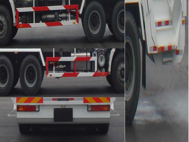 随底盘选装同系列驾驶室、前面罩、遮阳罩;仅选用4375+1350mm轴距;该车选装3种配置后部工作机构,配置A型挂桶式提升机构后伸量为370mm,车总长为10090mm,额定载质量为9920kg,整备质量为14950kg;配置B型摆臂式提升机构后伸量为570mm,车总长为10290mm,额定载质量为9840kg,整备质量为15030kg;配置C型簸箕式提升机构后伸量为650mm,车总长为10370mm,额定载质量为9820kg,整备质量为15050kg;侧防护材质:Q235A,连接方式:螺栓连接;车身结构满足后防护安装要求,离地高度:530mm;选装ABS型号及厂家分别是:西安正昌电子有限责任公司(型号:ZQFB-V),广州市科密汽车制动技术开发有限公司(型号:CM4XL-4S/4K),浙江万安科技股份有限公司(型号:VIE ABS-Ⅱ).WP6.245E50油耗值为37.17,WP7.270E51油耗值为37.23.安装带卫星定位功能的行驶记录仪.车辆装有垃圾箱体、填装器、后上料装置,用以收集、处理、转运垃圾作业. |