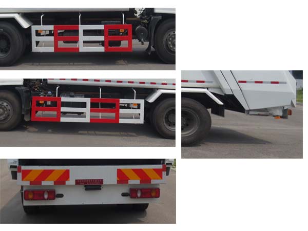 | 1、基础样车为标准车,车总长为8100,额定载质量为6455,整备质量为9150;2、选装新式翻转架提升机构,后伸量为650,车总长为8750,额定载质量为6205,整备质量为9400。3、侧防护装置所用材料为Q235钢板,与底盘纵梁螺栓连接。车身结构满足后防护的安装要求,离地高度为540mm。 4、该车装置带卫星定位功能的行驶记录仪。5、ABS型号:3631010-C2000,4460046440,生产厂家:东科克诺尔商用车制动系统(十堰)有限公司,威伯科汽车控制系统(中国)有限公司。6、选装驾驶室前脸扰流罩。7、仅选用4500的轴距和ISD210 50型发动机。8、本车安装推板、厢体及后门,主要用于储存、装卸及运输垃圾。 |