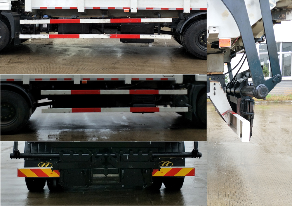 | 采用底盘4500mm轴距,后悬2070mm;后伸375mm.选装不带挡桶架(高3300mm).侧防护装置材料为Q235,连接方式为螺栓连接;后防护装置材料为Q235,连接方式为螺栓连接后防护装置断面尺寸:150?0mm,后防护离地高度:475mm;随底盘选装驾驶室前脸扰流罩、前雾灯。随底盘选装驾驶室外型。随底盘装ABS,ABS型号:4460046440,生产厂家:威伯科汽车控制系统(中国)有限公司;ABS型号:3631010-C2000,生产厂家:东科克诺尔商用车制动系统十堰有限公司, 该车安装具有卫星定位功能的行驶记录仪 |