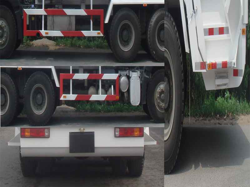 仅选用4300+1350mm轴距;仅选用钢板弹簧悬架;该车选装3种配置后部工作机构,配置A型挂桶式提升机构后伸量为370mm,车总长为9910mm,额定载质量为10100kg,整备质量为14770kg;配置B型摆臂式提升机构后伸量为570mm,车总长为10110mm,额定载质量为10020kg,整备质量为14850kg;配置C型簸箕式提升机构后伸量为650mm,车总长为10190mm,额定载质量为10000kg,整备质量为14870kg;侧防护材质:Q235A,连接方式:螺栓连接,车身结构满足后防护安装要求,离地高度:540mm;ABS型号:4460046300, 生产厂家:威伯科汽车控制系统(中国)有限公司.安装带卫星定位功能的行驶记录仪.随底盘选装导流罩, 选装导风板。选装遮阳罩, 选装后风窗.MC07.24-50型发动机油耗值35.06,MC07.28-50型发动机油耗值35.11,MC07.31-50型发动机油耗值35.25,MC07.34-50型发动机油耗值35.45,MC07.38-50型发动机油耗值35.46.车辆装有垃圾箱体、填装器、后上料装置,用以收集、处理、转运垃圾作业. |