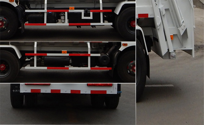 | 随底盘选装前面罩,前保险杠,前组合灯具.可选装翻桶机构,选装翻桶机构的车辆长度为6805mm(含后伸量310mm),整备质量5870kg;侧防护装置材料:矩管Q235;连接方式:与车厢螺栓连接. 车辆后部下沿离地高530mm,故未加装后防护装置.仅采用的发动机型号及油耗值(L/100km)对应关系:YC4S140-50/18.5,ISF3.8s5141/18.3.ABS型号:ABS/ASR-24V-4S/4M,ABS生产企业:襄阳东风隆诚机械有限责任公司. |