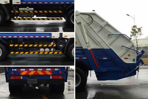 采用底盘4500+1350mm轴距.当准乘人数为2人时,额定载质量9850kg,9450kg、为3人时额定载质量9785kg,9385kg.该车工作装置有5种配置,可选装:提斗装置(A)、无上料装置(B)、翻(铁)桶装置(C)、翻斗装置(D)、翻铁桶提斗装置(E).配置A、D、E时,整备质量15420kg;配置B、C时,整备质量15020kg,.配置A时,长10257mm,后悬2895mm;配置B时,长10087mm,后悬2725mm;配置C时,长10467mm,后悬3105mm;配置D时,长10127mm,后悬2765mm;配置E时,长10485mm,后悬3123mm;该车装有垃圾箱体、填装器、后上料装置,用以收集、处理、转运垃圾作业.还可根据装载垃圾桶类型选装翻桶装置的局部外观.侧面防护装置的材料材质为Q235A,连接方式为螺栓连接;后部防护装置与工作装置干涉,故豁免.充当后防护装置的最大离地高度为475毫米.随底盘装ABS, ABS型号/企业: ABS-E 4S/4M/威伯科汽车控制系统有限公司.安装具有卫星定位功能的行驶记录仪.随底盘选装ISD245 50,ISD270 50发动机,对应的油耗值(L/100km)分别为36.42,36.55.该车整车涂装可变. |