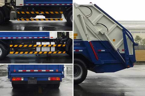 轴距:4800mm+1350mm.当准乘人数为2人时额定载质量10020kg,9520kg、为3人时额定载质量9955kg,9455kg.该车工作装置有5种配置,可选装:提斗装置(A)、无上料装置(B)、翻(铁)桶装置(C)、翻斗装置(D)、翻铁桶提斗装置(E).配置A、D、E时,整备质量15350kg;配置B、C时,整备质量14850kg,.配置A时,长10370mm,后悬2820mm;配置B时,长10200mm,后悬2650mm;配置C时,长10580mm,后悬3030mm;配置D时,长10240mm,后悬2690mm;配置E时,长10598mm,后悬3048mm;该车装有垃圾箱体、填装器、后上料装置,用以收集、处理、转运垃圾作业.还可根据装载垃圾桶类型选装翻桶装置的局部外观.侧面防护装置的材料材质为Q235A,连接方式为螺栓连接;后部防护装置与工作装置干涉,故豁免.后下部工作装置最大离地高度为435毫米.随底盘装ABS,ABS防抱死制动系统生产厂家:浙江万安科技股份有限公司,型号:VIE ABS-Ⅱ;该车发动机为CA6DK1-26E51时,油耗为36.61L/100Km;发动机为CA6DK1-26E5时,油耗为36.61L/100Km;该车安装具有卫星定位功能的行驶记录仪.该车整车涂装可变. |