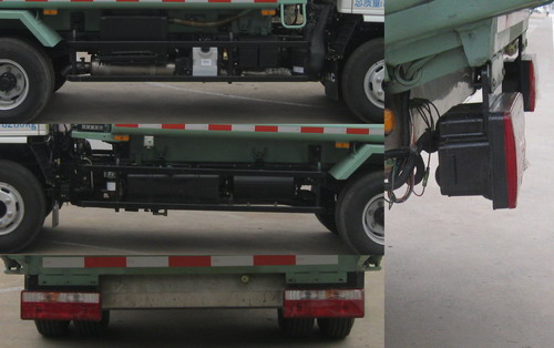 | 车辆后部选装垃圾桶翻转机构时,车辆长度为6730mm,后伸440mm;选装簸箕型翻转机构时车辆长度为6600mm,后伸310mm,车辆高度为2805mm,整备质量5380kg;侧护栏与车辆连接方式为螺栓连接;车辆后部由于结构限制无法安装后部防护,离地高度为470mm,ABS系统控制器型号:CM4XL-4S/4K (4S/4M),ABS系统控制器生产厂家:广州市科密汽车制动技术开发有限公司;车辆外观颜色可变,随底盘选装后视镜 |