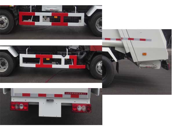 | 1,选装箱体边板造型。2,标准车总长为6350,额定载质量为2955,整备质量为5130。3,选装翻转架式提升机构后伸量为400,车总长为6750,额定载质量为2805,整备质量为5280。4,选装料斗式提升机构后伸量为300,车总长为6650,额定载质量为2755,整备质量为5330。5,侧防护材质为Q235,整体焊接,防护支架与左右防护及底盘纵梁螺栓连接。车身结构满足后防护的安装要求,离地高度为400mm。6,ABS型号为ABS-E,生产企业为威伯科汽车控制系统(中国)有限公司;7,本车安装推板、厢体及后门,主要用于储存、装卸及运输垃圾。 |