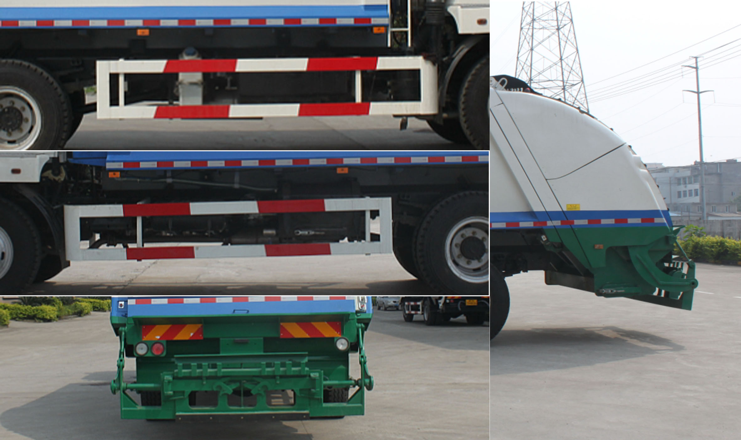 | 本车选装侧裙板机构,垃圾桶翻桶机构;翻斗门翻转机构.当安装普通侧防护栏机构不装翻转机构时,整车整备质量9300kg,载质量6305kg,后悬2320mm,整车长8250mm;选装垃圾桶翻桶机构时,整车整备质量9550kg,载质量6055kg,后伸400mm,整车长8650mm;选装翻斗门翻转机构时,整车整备质量9550kg,载质量6055kg,后伸250mm,整车长8500mm.当选装侧裙板机构时,整车尺寸不变,整备质量分别为9550kg,9800kg,9800kg.随底盘选装前围及前灯具.ABS型号:3631010-C2000,4460046440;生产厂家:东科克诺尔商用车制动系统(十堰)有限公司,威伯科汽车控制系统(中国)有限公司;仅用轴距4500mm底盘及ISD210 50发动机,油耗为27.3L/100km.侧防护栏材质Q235栓接;后部车辆构件代替后防护栏起防护作用.安装具有卫星定位功能的行驶记录仪. |