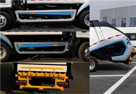 | 该车具有三种配置:A无装料装置,B后簸箕装料机构,C后提桶装料机构;配置A时长6430mm,高2460mm,后伸1100mm,整备质量4880kg,额定载质量2350kg; 配置B时长6775mm,后伸1445mm,整备质量5300kg,额定载质量1930kg;配置C时长6795mm,后伸1465mm,整备质量5220kg,额定载质量2010kg; 该车可安装两种ABS,ABS型号,生产厂家分别是:ABS 8.1 EA106,博世汽车部件(苏州)有限公司,ABS 8,克诺尔制动设备(上海)有限公司。侧防护材质Q235,连接方式螺栓连接;后防护豁免,由尾部专用装置替代。 |