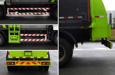 该车仅选用4500mm轴距底盘.选装简便型卸料装置时,整备质量为8500kg,额定载质量为9305kg;选装基本型卸料装置时,整备质量为8655kg,额定载质量为9150kg;侧面防护装置材料为Q235A,与车辆的连接方式为螺栓连接,后下部防护为裙边结构,替代后防护的离地高度为500mm.随底盘选装驾驶室外观;随底盘装ABS.ABS型号:3631010-C2000,4460046440;生产厂家:东科克诺尔商用车制动系统(十堰)有限公司,威伯科汽车控制系统(中国)有限公司. |