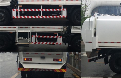 该车仅选用底盘轴距4500mm。该车配置A型链条式、B型拉杆式两种侧提桶机构,配置A型侧提桶机构时整车高度为2990mm,整备质量为8350kg,配置B型侧提桶机构时整车高度为3020mm,整备质量为8200kg; 该车装ABS,ABS型号:3631010-C2000;生产厂家:东科克诺尔商用车制动系统(十堰)有限公司。侧防护、后防护材料Q235,连接方式:螺栓连接,后防护截面尺寸120?0mm,离地高520mm。该车可随底盘选装一种驾驶室顶部无装饰灯具状态。 |