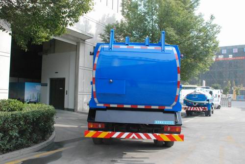 该车具有拉杆式,链条式2种侧提桶机构.当为拉杆式侧提桶机构时,车辆高3025mm,整备质量7300kg,额定载质量5000kg;当为链条式提桶机构时,车辆高2950mm,整备质量7500kg,额定载质量4800kg.该车可选装一种裙边结构,此时车辆整备质量为7700kg,额定载质量为4600kg.该车可选装一种箱体尾部配置导流罩结构,此时车辆后悬为1985mm,相应整车长度为7225mm.并可选装一种圆弧形挡泥板.ABS型号:3631010-C2000,生产厂家:东科克诺尔商用车制动系统(十堰)有限公司.侧,后防材料Q235-A,螺栓连接,后部防护装置的断面尺寸:120?0(mm),离地高度:510mm.该车可随底盘选装一种驾驶室顶部无装饰灯具状态. |
