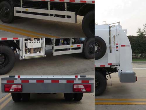 1.随底盘选装左右外后视镜,两种外后视镜仅镜杆长度不同.2.随底盘选装前雾灯.3.选装垃圾输送装置,选装时车辆后部外观有所差异,整备质量为4930kg,额定载质量为1785kg.4.选装车载称重装置.5.选装塑料材质护轮板.ABS系统型号:VIE ABS-II,ABS系统生产厂家:上海万捷汽车控制系统有限公司.车辆侧面防护装置材质为铝合金,连接方式为螺栓连接.后下部防护装置采用后门专用装置代替,其最大离地高度为435mm. |