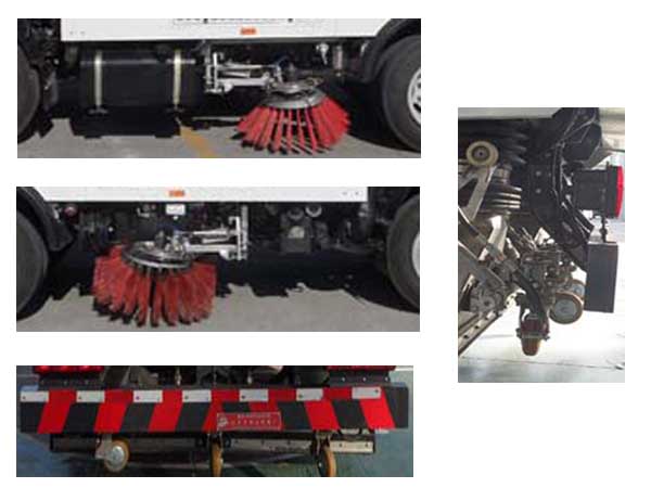 1.车辆侧防护装有专用固定装置,按规定可豁免。车辆后下部防护材质为Q235A,采用整体焊接,防护支架与汽车大梁螺栓连接。后下部防护断面尺寸为:180mm?0mm,离地高度为:410mm。2.选装框架式组合视镜及补盲镜。3.选装改前围面板,进气格栅,前保险杠,组合灯具,前雾灯,后视镜的驾驶室。4.ABS型号:CM4XL-4S/4M、ABS-E 4S/4M,ABS厂家:广州科密汽车电子控制技术股份有限公司、威伯科汽车控制系统(中国)有限公司。5.此车加装边刷、垃圾箱等专用装置改装而成,主要用于城市主要道路的清洗、保洁作业。 |