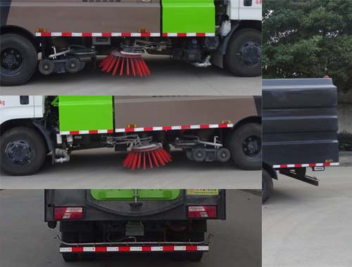 随底盘选装驾驶室,选装洗扫装置和后部结构样式。侧防护由专用装置代替。后防护采用冷弯型钢/Q235-A,螺栓连接。后防护截面高度尺寸120mm, 截面宽度尺寸50mm,下边缘离地高度450mm.ABS系统型号:VIE ABS-II,ABS系统生产厂家:上海万捷汽车控制系统有限公司。该车作为环卫设备之一,是一种集路面清扫、垃圾回收和运输为一体的新型高效清扫设备。