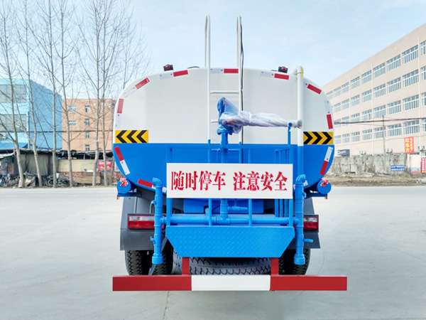 前喷后洒,前装有鸭形喷嘴或圆头冲嘴,后面装有圆柱开洒水喷嘴或莲蓬头喷嘴,后部有一工作平台,装配有高压水炮。后部还可装8个喷嘴(选装)喷水器一般用于冲洗街道。