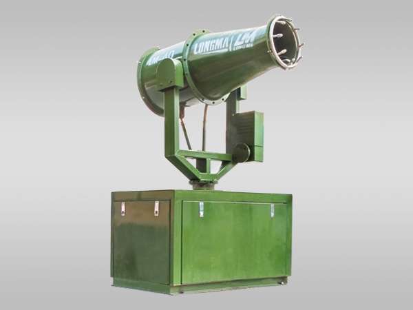 炮机是一种除尘湿式喷雾风机,属于环保机械适用于煤场,矿山,工地等容易扬尘的场所,可以降低空气中的粉尘,达到净化空气的作用。通过高性能的远射风机将水雾送到粉尘集中处,水雾与粉尘结合、吸附、成团、变重,在自身的重力作用下沉降到地面,从而达到有效降尘的目的。此技术除尘效率高,特别是对于微细粒径的呼吸性粉尘,除具有传统湿式除尘器优点之外,更主要的优点是:其雾化水颗粒粒径特别小,容易与粉尘颗粒结合而凝聚沉降下来,故其用水量比湿法除尘大大减小,只需传统湿式除尘用水量的千分之一,甚至更小。