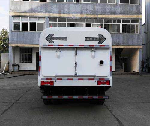 随底盘选装驾驶室;选装箱体外观、后部样式和扫刷结构;ABS系统控制器型号为APG3550500A6,ABS系统控制器生产企业为浙江亚太机电股份有限公司;侧面防护装置与工作装置相干涉,故豁免;后防护采用冷弯型钢/Q235-A,焊接连接。后防护采用冷弯型钢/Q235-A,焊接连接。后防护截面高度尺寸120mm, 截面宽度尺寸50mm,下边缘离地高度400mm。