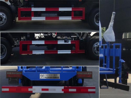 随底盘选装驾驶室,选装不同直径雾炮和洒水泵及管箱外观。运输介质:水,密度:1000千克/立方米。罐体有效容积7.35立方米。罐体外形尺寸(长壮ぶ嶙短轴)(mm):4200?000?300。侧防护采用冷弯型钢/Q235-A,焊接连接。后防护采用冷弯型钢/Q235-A,焊接连接。后防护截面高度尺寸100mm,截面宽度尺寸50mm,下边缘离地高度490mm。ABS系统生产厂家,型号 :襄阳东风隆诚机械有限责任公司,ABS/ASR-24V-4S/4M.该车专用装置为洒水泵,主要用于道路洒水,冲洗作业. |