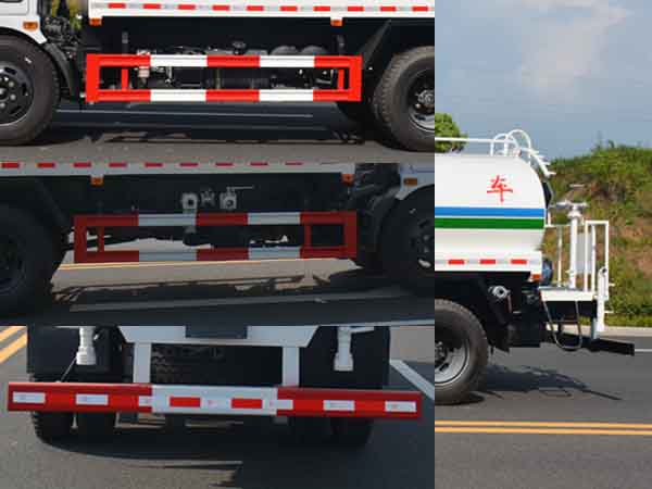 1,随底盘选装前面罩,前保险杠,前组合灯具及前雾灯;2,罐体有效容积7.11立方米,运输介质:水;密度:1000千克/立方米;罐体尺寸对应关系:4200?980?280(带后部平台或带后喷雾),4800?850?180(不带后部平台);3,防护装置材料材质采用Q235,后部防护连接方式:焊接连接,侧防护连接方式;螺栓连接,后部防护装置的断面尺寸为:130?5(mm),后部防护装置离地高度为:490(mm);4.ABS系统生产厂家,型号 :襄阳东风隆诚机械有限责任公司,ABS/ASR-24V-4S/4M;6.该车专用装置为洒水泵,主要用于道路洒水,冲洗作业. |