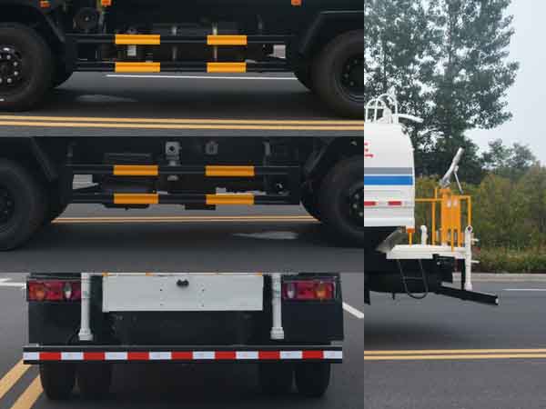 1,随底盘选装导流罩,选装灯具保险杠等新风格;2,罐体有效容积10.5立方米,运输介质:水;密度:1000千克/立方米;整车长/轴距/罐体尺寸对应关系:7500/3950/4200?200?500(带后部平台),7500/3950/4700?100?400(不带后部平台),7500/3950/3600?370?540(带后喷雾),整车长/轴距/罐体尺寸对应关系:8050/4500/4600?200?400(带后部平台), 8050/4500/5000?100?360(不带后部平台), 8050/4500/4000?350?500(带后喷雾);3,防护装置材料材质采用Q235,连接方式:侧防护采用螺栓连接,后防护采用焊接连接,后部防护装置的断面尺寸为:110?0(mm),后部防护装置离地高度为:500(mm);4,罐体颜色可变化,文字喷涂位置可变化;5,ABS型号为3631010-C2000,生产厂家为东科克诺尔商用车制动系统(十堰)有限公司;6.该车专用装置为洒水泵,主要用于道路洒水、冲洗作业. |