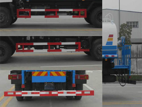 随底盘选装驾驶室前脸以及保险杠,选装椭圆罐形,选装后部喷雾机;罐体有效容积12.5立方米.外形长度/轴距/后悬/罐体尺寸一一对应:7750/3950/2350/4300?350?700,8600/4500/2650/4900?350?600,8800/4700/2650/5150?300?550;局部结构外观有变化,车辆颜色可选,文字喷涂位置可变化.侧后防护材料均为Q235,侧防护连接方式为焊接.后防护连接方式为螺栓连接,后部防护装置断面尺寸(宽赘?60?50(mm),后部防护离地高度:490(mm).仅采用4700(mm),4500(mm),3950(mm)轴距.底盘ABS的型号:3631010-C2000,生产厂为东科克诺尔商用车制动系统(十堰)有限公司。专用功能:道路洒水、冲洗作业;专用装置:罐体,洒水泵。 |