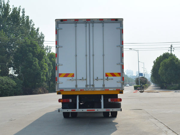 | 选装前围装饰件及前部灯具,选装后视镜.车厢顶部封闭,不可开启,选装平顶驾驶室,平顶驾驶室选装导流罩.选装新脚踏.选装侧面双开门、单开门和不开门等型式,可选装其它厂家功率相当的制冷机组,可选装底置式制冷机组.选装液压尾板,液压尾板收起状态水平长度260mm.侧防护装置材料:Q235;后防护装置材料:510L;后防护装置断面尺寸:100mm?0mm,后防护离地高度:500mm;侧防护装置连接方式:螺旋连接,后防护装置连接方式:螺栓连接.该车选用发动机与油耗对应关系:ISGe5-280:35.6L/100km,ISD270 50:35.6L/100km,ISD245 50:35.6L/100km,ISGe5-320:35.6L/100km.ABS系统控制器型号/生产企业对应关系:44600XXXX0/威伯科汽车控制系统(中国)有限公司;3550X-1010/东科克诺尔商用车制动系统(十堰)有限公司.安装具有卫星定位功能的行驶记录仪. |