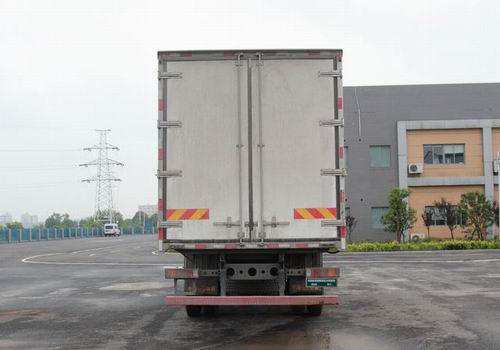 仅选用5000mm轴距底盘。选装普通驾驶室,选装翼子板。选装遮阳罩,选装玻璃后风窗,选装导流罩和侧导风板。选装其他型号制冷机。选装货厢侧面单开门或不开门结构,选装平板厢体结构。车厢顶部封闭,不可开启。选装液压举升尾板。额定载质量与驾驶室准乘人数一一对应。选装发动机MC05.18-50和MC05.21-50时,油耗申报值为28.2L/100km;选装发动机MC07.21-50和MC07.24-50时,油耗申报值为28.5L/100km。侧面防护装置所用材料材质为Q235A,连接方式为螺栓连接;后部防护装置所用材料材质为Q235A,连接方式为螺栓连接,断面尺寸为100mm?00mm,离地高度为530mm。ABS系统型号为4460046300,生产企业为威伯科汽车控制系统(中国)有限公司。安装具有卫星定位功能的行驶记录仪。 |