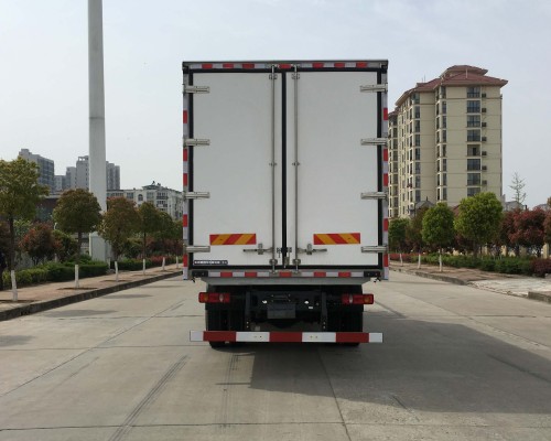 厢体顶部封闭,不可开启;可选装无侧门厢体,可选装其它厂家功率相当的制冷机组;前雾灯,前围扰流板均为选装件;驾驶室顶部装饰灯为选装件;选装卧铺侧窗装饰板,选装升降尾板,尾板收起状态时的水平长度为295mm.侧防护:材质Q235,螺栓连接;后下防护:材质Q235,螺栓连接,断面尺寸100X50mm或120X60mm,离地高度540mm;安装具有卫星定位功能的行驶记录仪.装有ABS,ABS型号:3631010-C2000,4460046440,生产厂家:东科克诺尔商用车制动系统(十堰)有限公司,威伯科汽车控制系统(中国)有限公司. |