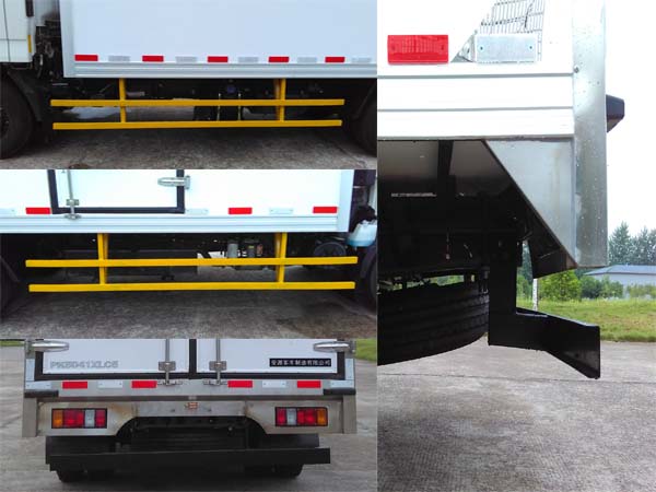 1.车厢顶部封闭,不可开启;2.随底盘装配ABS系统型号/生产企业:VIE ABS-II/浙江万安科技股份有限公司;3.发动机JX493ZLQ5的最大净功率:83kw;4.侧向可选装双开门或单开门,也可取消侧向开门,取消侧向开门时整车宽度为2060mm;5.侧面及后下部防护装置连接方式为螺栓连接,侧,后防护装置材料材质为:Q235,后防护装置断面尺寸为:100mm?5mm,离地高度为440mm。 |
