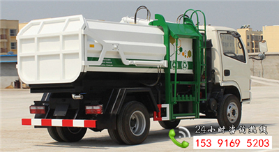 5方东风小多利卡自装卸式垃圾车又称挂桶式垃圾车,是一种与垃圾压缩中转站或者垃圾压缩车配套使用的环卫专用车辆,配合集装垃圾的定型容器如铁桶、塑料桶自行将垃圾装入、转运和倾卸的“自卸汽车”,可以一车配多个垃圾桶,降低了配备成本,增加了收集管理空间,主要用于环卫部门、社区进行生活垃圾收集,大型工矿企业垃圾清运等。一般用定型底盘改装,除整车性能应基本保持原车要求外,特别对装卸垃圾时的安全性和可自装卸垃圾车靠性要求较高。