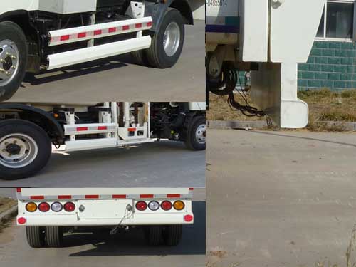 侧面防护装置所用材料材质:铝合金,连接方式为螺栓连接,后部防护装置所用材料材质:Q235B,连接方式为焊接,断面尺寸为178?50mm,离地高度为510mm.选装前面罩,选装驾驶室,选装保险杠,选装后视镜.ABS系统型号为44600XXXX0,生产企业为威伯科汽车控制系统(中国)有限公司。随底盘选装驾驶室。该车仅选用7.50-16 16PR,7.50R16 16PR,8.25-16 16PR,8.25R16 14PR轮胎。 |