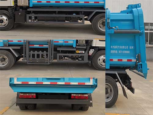1.该车用于餐厨垃圾收集、清运,主要专用装置为密封箱体、提桶机构;选用3360mm轴距时,整车长5800mm,后悬1355mm;选用3308mm轴距时,整车长5750mm,后悬1357mm;2.侧、后下部防护材质为Q235,螺栓连接,后下防护装置截面尺寸和离地高度分别为120*60(mm)和350mm;3.ABS控制器型号及生产企业:CM4XL-4S/4M,广州科密汽车电子控制技术股份有限公司;4.随底盘选装改前围面板、进气格栅、前保险杠,前组合灯具的驾驶室;箱体前部不选装清洗装置时可选装备胎架。 |