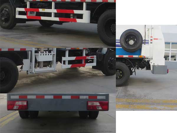 1.随底盘选装左右外后视镜,两种外后视镜仅镜杆长度不同.2.随底盘选装前雾灯,车顶换气天窗.3.选装垃圾输送装置,选装时车辆后部外观有所差异,整备质量为5200kg,额定载质量为2815kg.4.选装塑料材质护轮板.5.选装车载称重装置.6.选装裙边结构,选装时裙边结构代替侧面防护装置,整备质量为5200kg,额定载质量为2815kg.ABS系统型号:VIE ABS-II,ABS系统生产厂家:上海万捷汽车控制系统有限公司.车辆侧面防护装置的材料材质为Q235,连接方式为螺栓连接.后下部防护装置采用专用装置代替,其最大离地高度为460mm. |