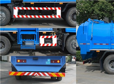 本车仅使用3800mm轴距底盘.该车配置A型链条式,B型拉杆式两种侧提桶机构,配置A型侧提桶机构时整车高度为2950mm,整备质量为7260kg,额定载质量5035kg;配置B型侧提桶机构时整车高度为3025mm,整备质量为7060kg,额定载质量5235kg;该车可随底盘选装单排驾驶室.该车随底盘安装ABS,ABS型号及生产厂家:3631010-C2000/东科克诺尔商用车制动系统(十堰)有限公司.侧,后防材料Q235,螺栓连接,后部防护装置的断面尺寸:120?0(mm),离地高度:400mm.该车主要由箱体,提升装置,液压控制系统等组成,主要用于餐厨垃圾的收集与处理. |
