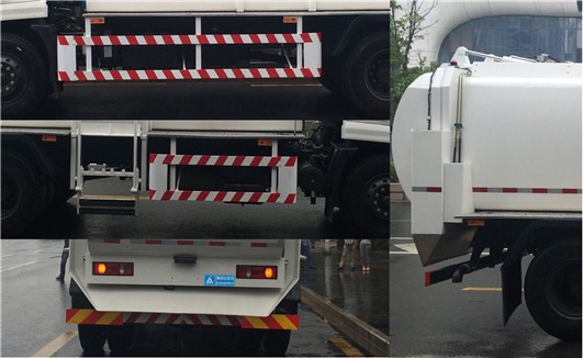 该车仅选用底盘轴距4500mm。该车配置A型链条式、B型拉杆式两种侧提桶机构,配置A型侧提桶机构时整车高度为2990mm,整备质量为8350kg,配置B型侧提桶机构时整车高度为3020mm,整备质量为8200kg; 该车装ABS,ABS型号:3631010-C2000,4460046440;生产厂家:东科克诺尔商用车制动系统(十堰)有限公司,威伯科汽车控制系统(中国)有限公司.侧防护、后防护材料Q235,连接方式:螺栓连接,后防护截面尺寸120?0mm,离地高520mm。该车可随底盘选装一种驾驶室顶部无装饰灯具状态,可见选装照片中车辆前部具有前雾灯和无前雾灯状态照片。 |