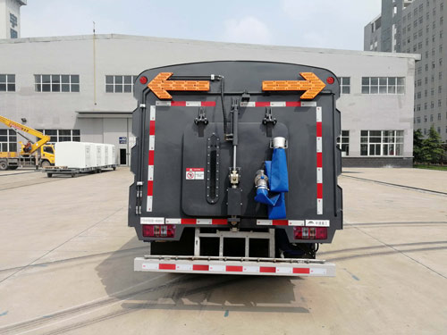 1.储能装置种类/生产企业:磷酸铁锂蓄电池/宁德时代新能源科技股份有限公司。2.可在全国销售。3.左右侧防护装置与工作装置(外摆喷杆,吸嘴,扫刷等)相干涉,由工作装置代替,故豁免。后下部防护装置材质为Q355,与箱体采用螺栓连接,截面尺寸为120?0(mm),离地高度为480mm。4.ABS型号/生产厂家:BTL 24V ABS/芜湖伯特利电子控制系统有限公司。5.可选装顶部加水口,水位计不同位置,后门外观,后爬梯,不同结构箱体,不同形式后门观察孔,不同弧度的箱体顶部造型;随底盘选装驾驶室;当选装顶部加水口时对应整车高度为2740mm。6.该车型的左侧加水口、后下喷雾和工具箱为选装件。7.该车装有箱体和洗扫装置,用以道路,厂(场)区的洗扫作业。 |