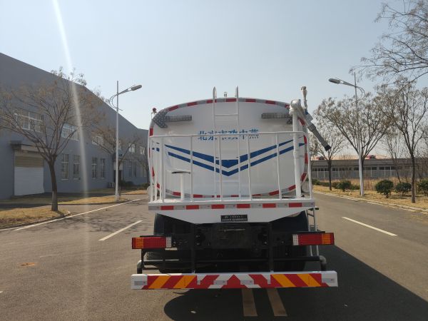 罐体外形尺寸(长壮ぶ嶙短轴)(mm):5800?450?600,罐体有效容积:15.2立方米,运输密度为1000千克/立方米的水.侧后防护装置材料为Q235,侧防护采用螺栓紧固于副梁上,后防护用螺栓紧固于纵梁上,后防护断面尺寸为70?50mm,后防护离地高度为430mm.该车选装前平台,前置高压喷枪,道路作业牌,喷雾装置,选装后平台时不加装喷雾装置;选装前置高压喷枪时整车长为9720mm,前伸400mm; 随底盘安装符合规定的具有卫星定位功能的行驶记录仪.ABS型号/生产厂家:3631010-C2000/东科克诺尔商用车制动系统(十堰)有限公司,