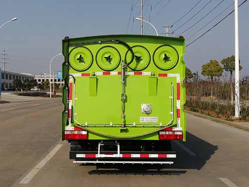 1、该车用于路面吸尘,主要专用装置为箱体、吸尘装置总成。选装弧形箱体或方形箱体及箱体外观样式;选装吸盘中置或吸盘后置;选装扫刷;选装后部空滤;选装后垃圾箱尾门样式;选装后部箱体样式。整车外形长/轴距/后悬对应关系为(mm):5600/2700/1845,5900/2950/1895,6200/3308/1837。2、侧防护由车辆两侧专用作业装置替代。后防护采用冷弯型钢/Q235,焊接,截面高100mm,截面宽50mm,下边缘离地高400mm。3、随底盘选装前面罩,前保险杠,前组合灯具,选装一排半驾驶室;ABS型号/厂家:ABS/ASR-12V-4S/4M/襄阳东风隆诚机械有限责任公司。