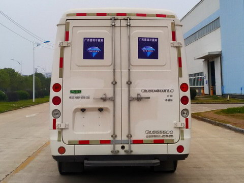 该车有OBD;安装具有卫星定位功能的行驶记录仪;安装专用冷藏制冷机组装置;选装不同颜色大灯,前雾灯,车轮装饰罩,后脚踏板,倒车影像,后门门锁,不同外观的车门窗,黑色前格栅,前保险外观;选装脚踏板车长是5745mm;ABS生产企业:广州瑞立科密汽车电子股份有限公司;ABS型号:CM4YL;YC4Y22-13550发动机最大净功率为98kW,油耗申报值11.3L/100km;D19TCIE8发动机最大净功率为95kW,油耗申报值11.1L/100km;车厢顶部封闭,不可开启;驾驶室区与货舱用钣金进行有效隔离,货舱部分封闭. |