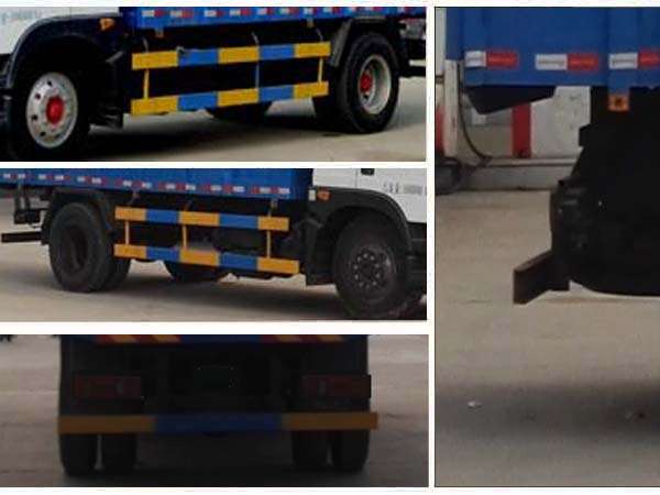 1、随底盘选装驾驶室。2、该车整车长/前悬/轴距/后悬/额定载质量/整备质量对应关系为(mm):7800/1450/4500/1850/8060/7745, 7600/1250/4500/1850/8060/7745,7250/1450/3950/1850/8520/7285,7050/1250/3950/1850/8520/7285。3、防护材料:Q235A碳钢,连接方式:左右侧面及后下部防护均采用焊接连接,后部防护断面尺寸(mm):120?0,后部防护离地高度(mm):500。4、ABS型号: 3631010-C2000,生产厂家为东科克诺尔商用车制动系统(十堰)有限公司。5、发动机与油耗值对应关系:YC6J180-50/24.3,YC4EG160-50/24.8,ISD185 50/24.7,ISD210 50/24.5,CA4DLD-15E5/24.0。6、车辆颜色、字体喷涂和局部细节可变化。7、选装车辆侧面及后部外观样式。 |