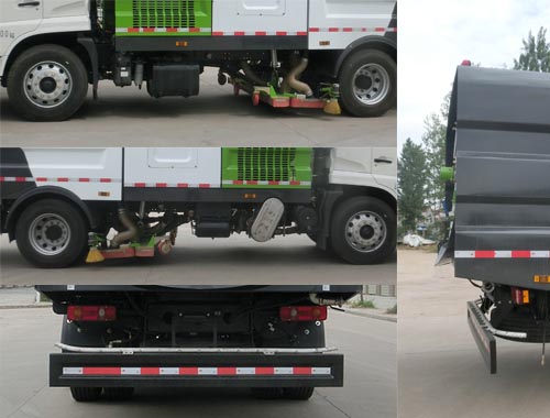 随底盘选装驾驶室,选装厢体和后部结构样式,选装后背式排气管(对应底盘外廓高度3090);ABS型号/生产厂家:3631010-C2000/东科克诺尔商用车制动系统(十堰)有限公司,ABS 8/东科克诺尔商用车制动系统(十堰)有限公司, 4460046450/威伯科汽车控制系统(中国)有限公司。侧防护由多向工作吸盘代替;后防护采用冷弯型钢/Q235-B,螺栓连接。后防护截面高度尺寸260mm, 截面宽度尺寸50mm,下边缘离地高度450mm。该车作为环卫设备之一,是一种集路面清扫,垃圾回收和运输为一体的新型高效清扫设备。车长、轴距一一对应。 |
