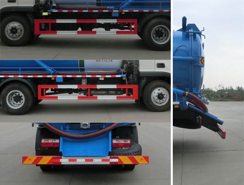 | 随底盘选装驾驶室。选装新前格栅及新logo。罐体有效容积9.9立方米,罐体尺寸为(直段长字本?(毫米):4500?650,4800?600。ABS型号为CM4XL-4S/4M,生产厂家为广州瑞立科密汽车电子股份有限公司。侧面防护采用冷弯型钢/Q235-B,螺栓连接;后防护采用冷弯型钢/Q235-B,螺栓连接。后防护截面高度尺寸150mm, 截面宽度尺寸55mm,下边缘离地高度500mm。该车用于下水道或化粪池的液态污物的抽吸工作,主要专用装置为吸污罐和抽吸系统。车长/轴距一一对应。 |
